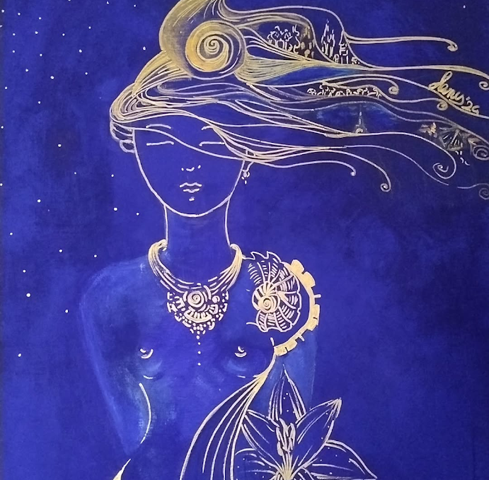 Quadro acrilico e pennarello dorato. 2023